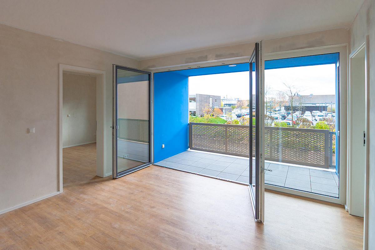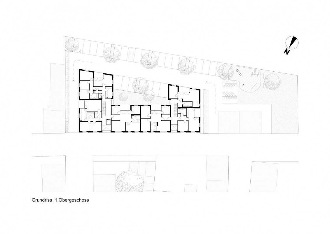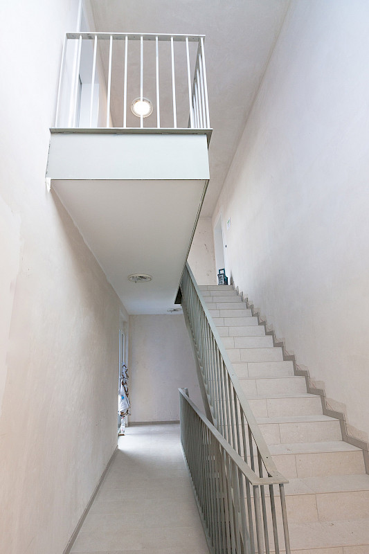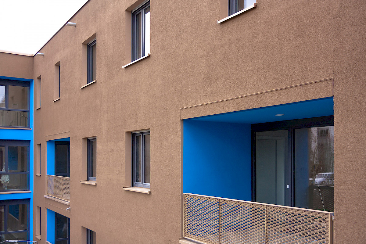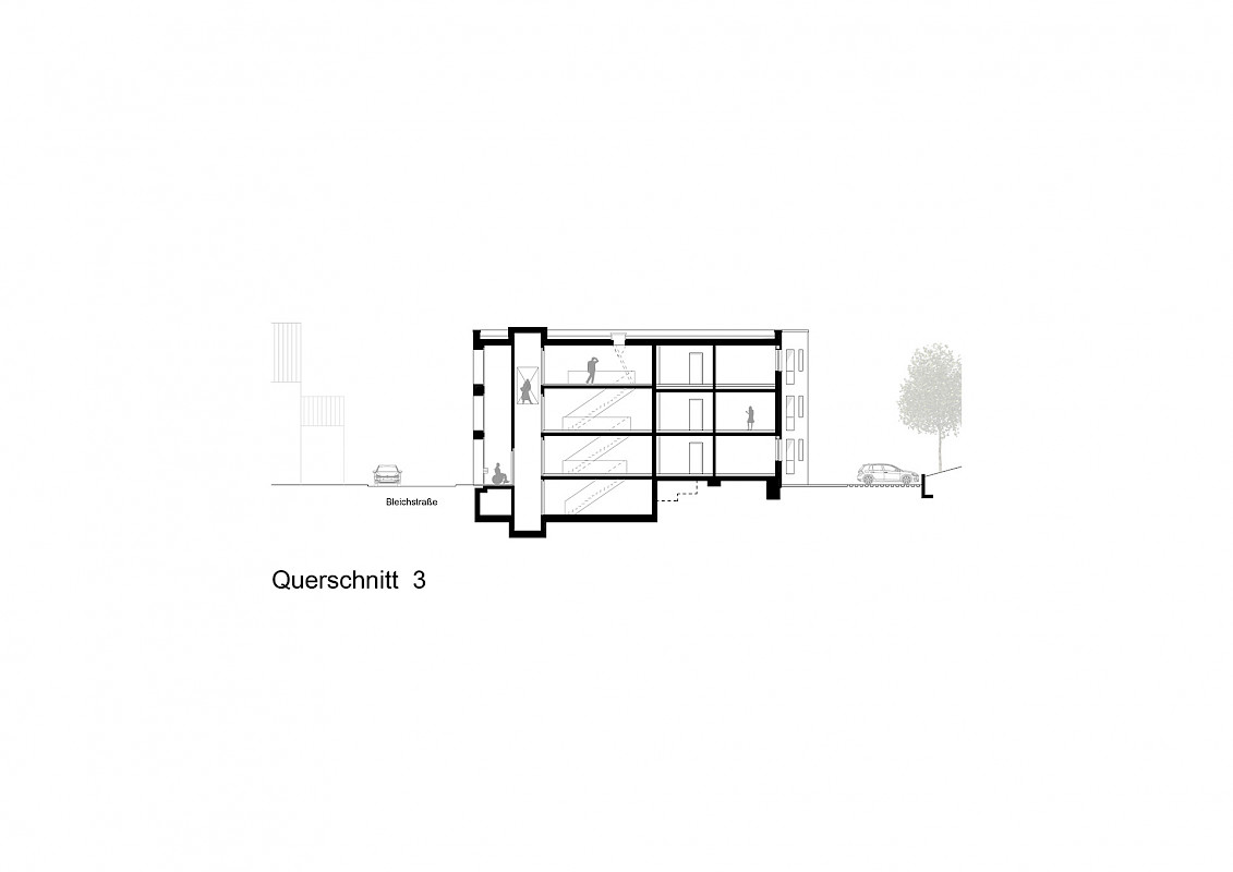 Die beiden Treppenhäuser erschließen insgesamt 17 Wohneinheiten und neun Wohneinheiten sind über einen Aufzug barrierefrei erschlossen. Zwei Wohnungen erfüllen die Anforderungen an barrierefreies Wohnen und eine Wohnung wurde als Rolli-Wohnung geplant.