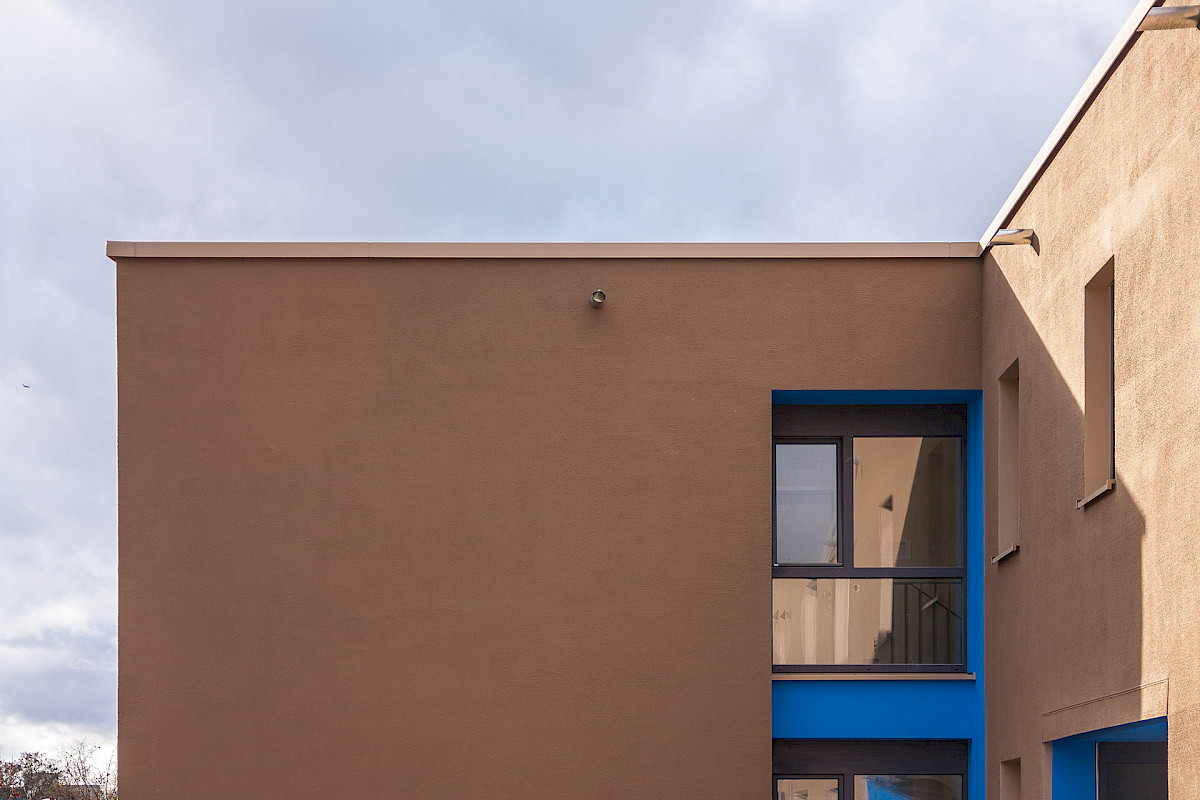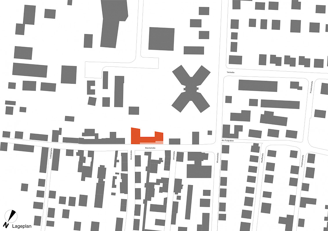 Der Entwurfsgedanke von SCHOYERER ARCHITEKTEN_SYRA war es, mit dem Neubau ein Bindeglied zwischen altem Ortskern und Gewerbegebiet zu schaffen. Es ergab sich ein C-förmiger Baukörper mit geschlossener Kante zur Bleichstraße und Innenhof nach Süden.