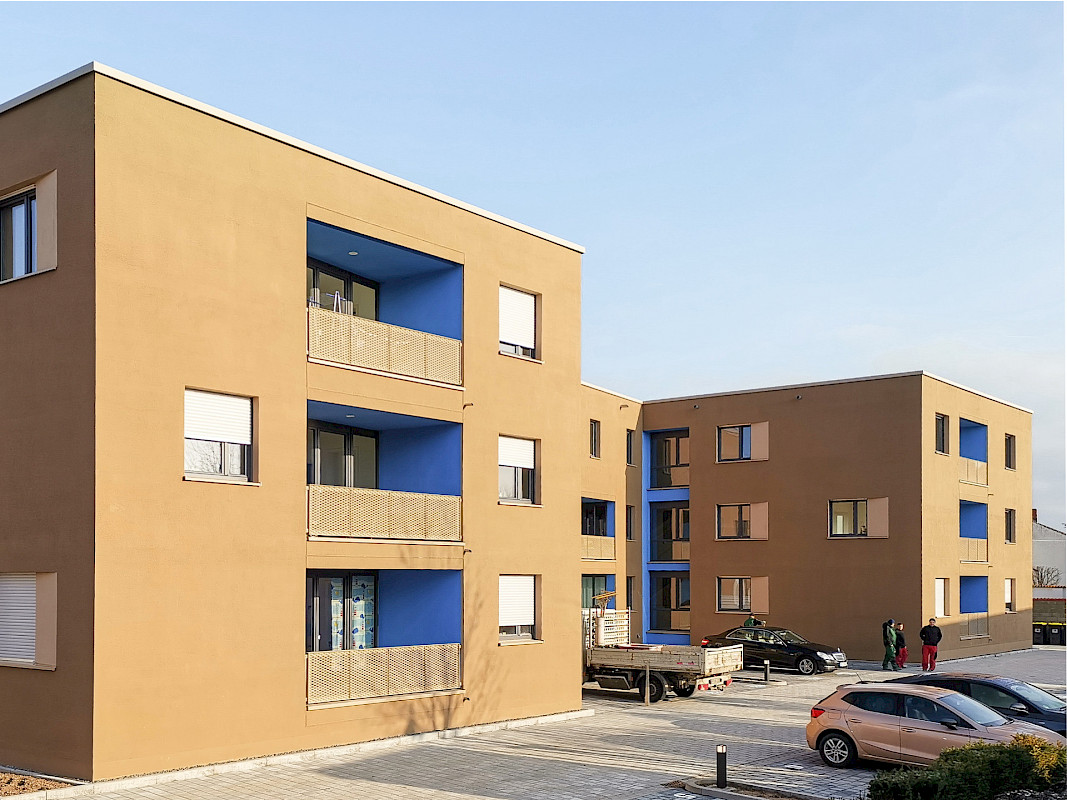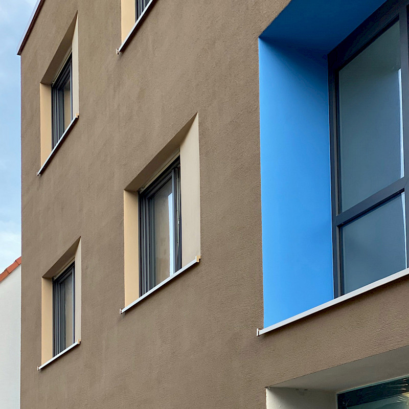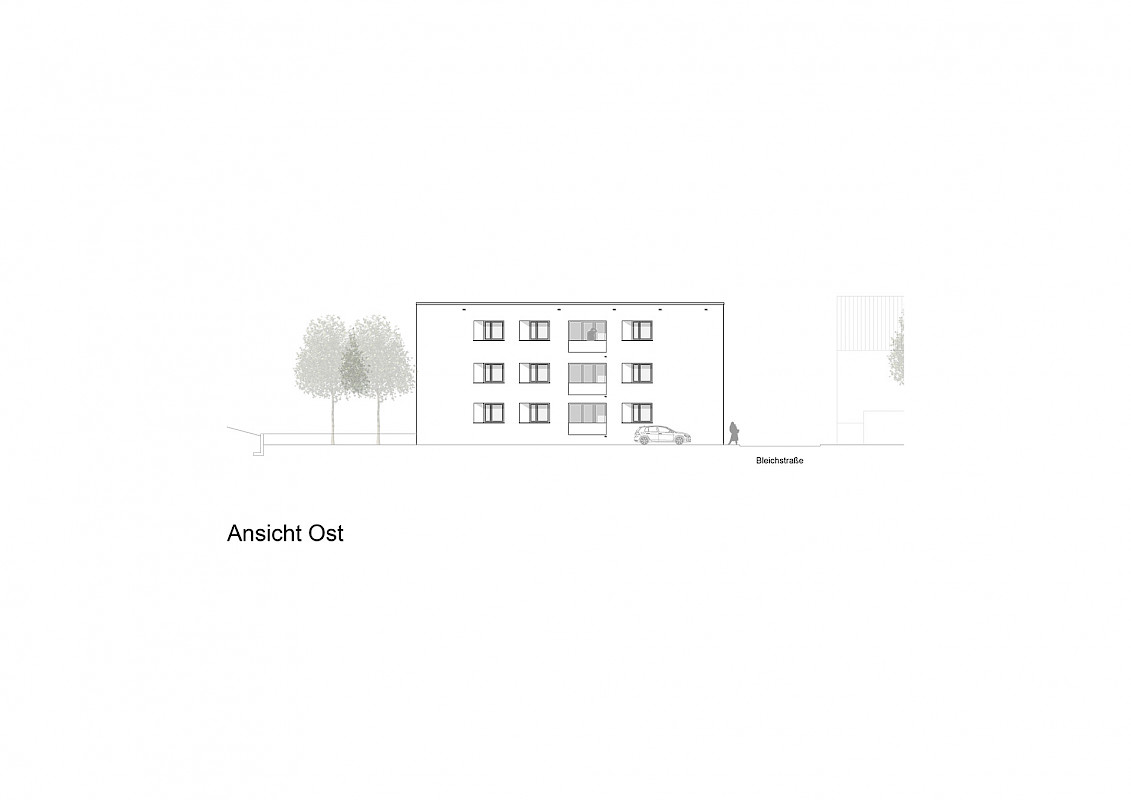 Der 3-geschossige Wohnungsneubau in Ingelheim, Frei-Weinheim liegt nur ca. 800 Meter von Rheinufer und der Fähre in den Rheingau entfernt und die Bleichstraße bildet die Grenze zwischen altem Ortskern im Norden und dem südlichen Gewerbegebiet.