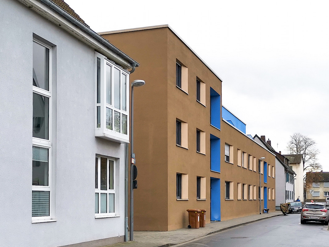 Der 3-geschossige Wohnungsneubau in Ingelheim, Frei-Weinheim liegt nur ca. 800 Meter von Rheinufer und der Fähre in den Rheingau entfernt und die Bleichstraße bildet die Grenze zwischen altem Ortskern im Norden und dem südlichen Gewerbegebiet.