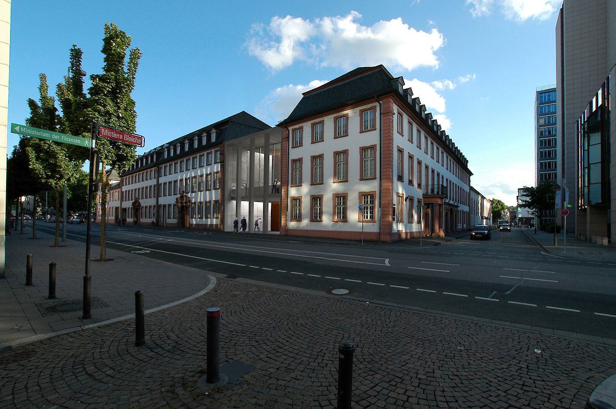 Die Gestaltung der beiden Zugänge ermöglicht bereits aus den Straßenräumen Mittlere Bleiche und Bauhofstraße jeweils ungehinderte Blicke in die Abfolge von Innenhöfen und Arkadenbereichen des neuen Eltzer Hofes und bis in die daran angrenzenden Bereiche des Landesmuseums. Vom repräsentativen Innenhof aus sind die unterschiedlichen Nutzungsbereiche gut ablesbar und barrierefrei erreichbar: Im EG gelangt man über die Arkaden zu den Ausstellungsräumen, zu den unterschiedlichen gastronomischen Einrichtungen Restaurant, Café und Bar/Musikclub im KG, zur Steinhalle und durch den Marstall zum Hof des Landesmuseums, im 1.OG werden über die Loggia das Foyer des Festsaales und die Tagungsräume erreicht, im 2.OG gelangt man zu den Büroflächen, im Dachgeschoß sind weitere Büroflächen angeordnet.