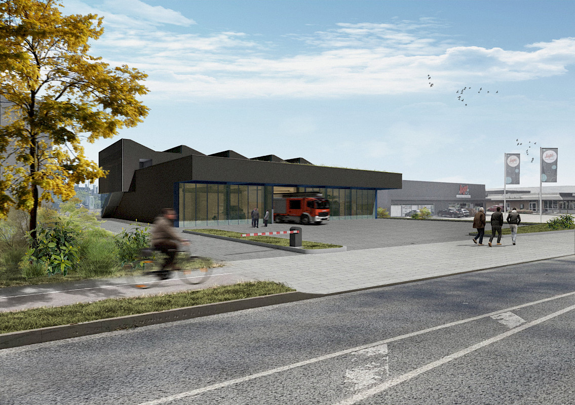 Das Gebäude wird weitgehend energieautark konzipiert: Großflächige Photovoltaikanlagen auf den Dächern und eine begrünte Dachfläche über der Fahrzeughalle leisten einen aktiven Beitrag zur Nachhaltigkeit. Die Verwendung ökologischer Baustoffe ermöglicht eine ausgezeichnete Ökobilanz. Neben den Baukosten stehen auch die langfristigen Betriebs- und Unterhaltskosten im Fokus.