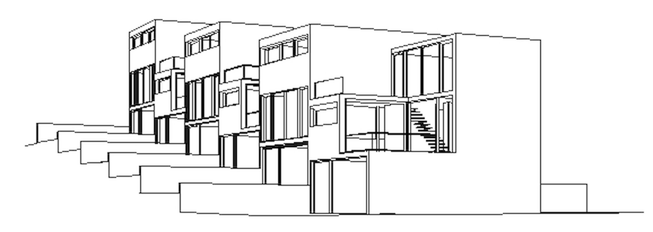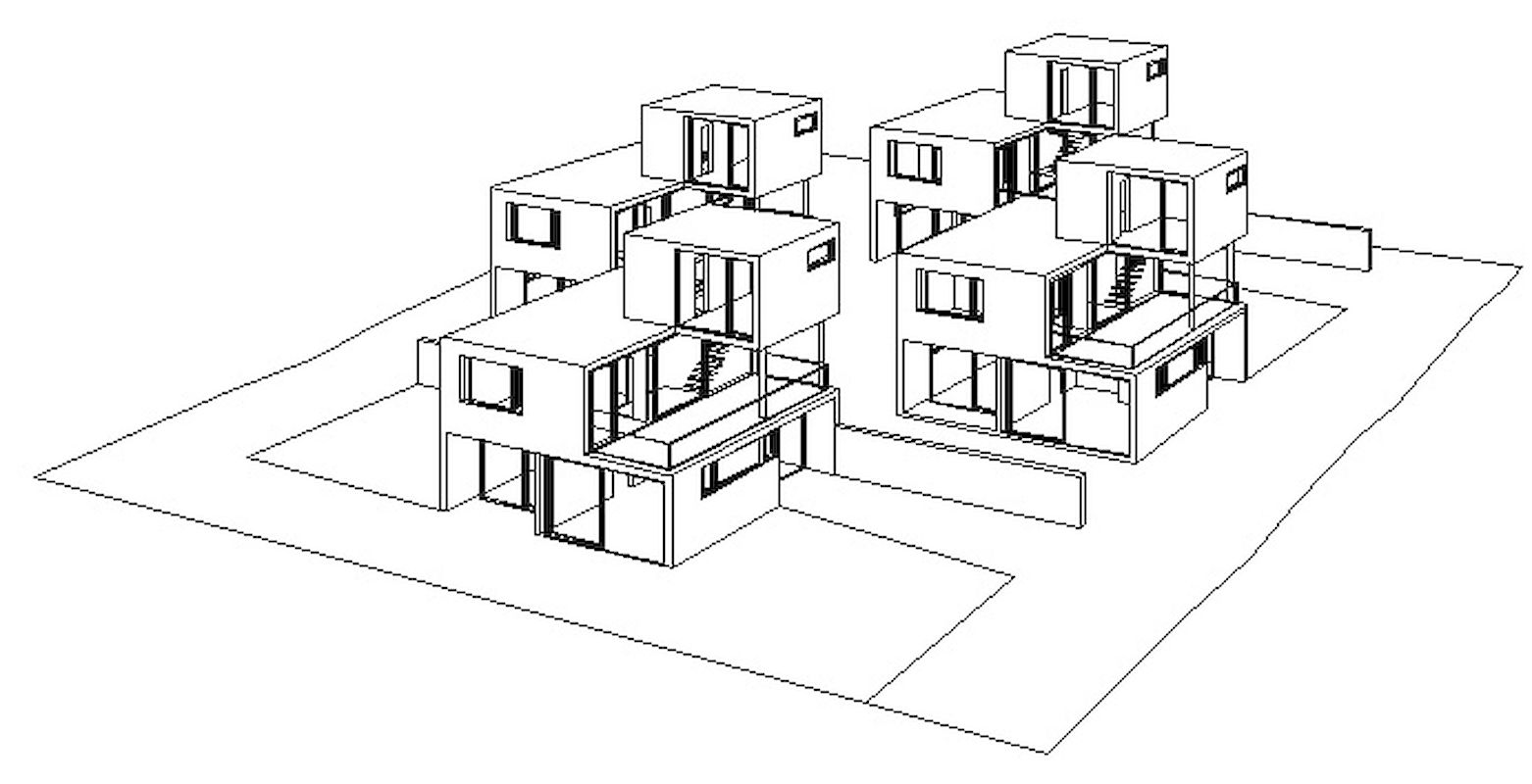 Auf drei Bebauungsstreifen konzentriert sich das Bauprogramm. Im Norden, hangaufwärts, liegen die beiden Bebauungsstreifen auf welchen die Wohnstruktur angeordnet sind. Zwischen den beiden Wohnstreifen und dem Ortsrand von Lahr wird ein Band für übergreifende Infrastruktur und Freizeiteinrichtungen, als Bindeglied zwischen neuem Wohngebiet und bestehender Siedlungsstruktur, errichtet. Die Wohnstreifen sind in Bebauungsfelder unterteilt, auf welchen sich jeweils kleine Hausgruppen von Reihenhäusern, Doppelhäusern, Einfamilienhäusern und Mehrfamilienhäusern abwechseln. Bauabschnitte sind nahezu beliebig wählbar, da die Bebauungsfelder nur jeweils eine geringe Anzahl von Häusern aufnehmen sollen. Pro Feld können 6 Reihenhäuser, 6 Doppelhäuser, vier Einfamilienhäuser oder ein Mehrfamilienhaus angesiedelt werden. Leitgedanke für die vorgeschlagenen Baukörperausbildungen war bei allen Gebäudetypen, trotz der Baukörperbündelung einen starken Außenraumbezug (Zimmer mit Aussicht in den obersten Geschossen) zu schaffen. Jedem Bebauungsfeld wird eine Fläche für Schaltgarten angegliedert, d.h. hier kann jeweils unterschiedlichen und wechselnden Bedürfnissen nach privaten Gartenflächen entsprochen werden.