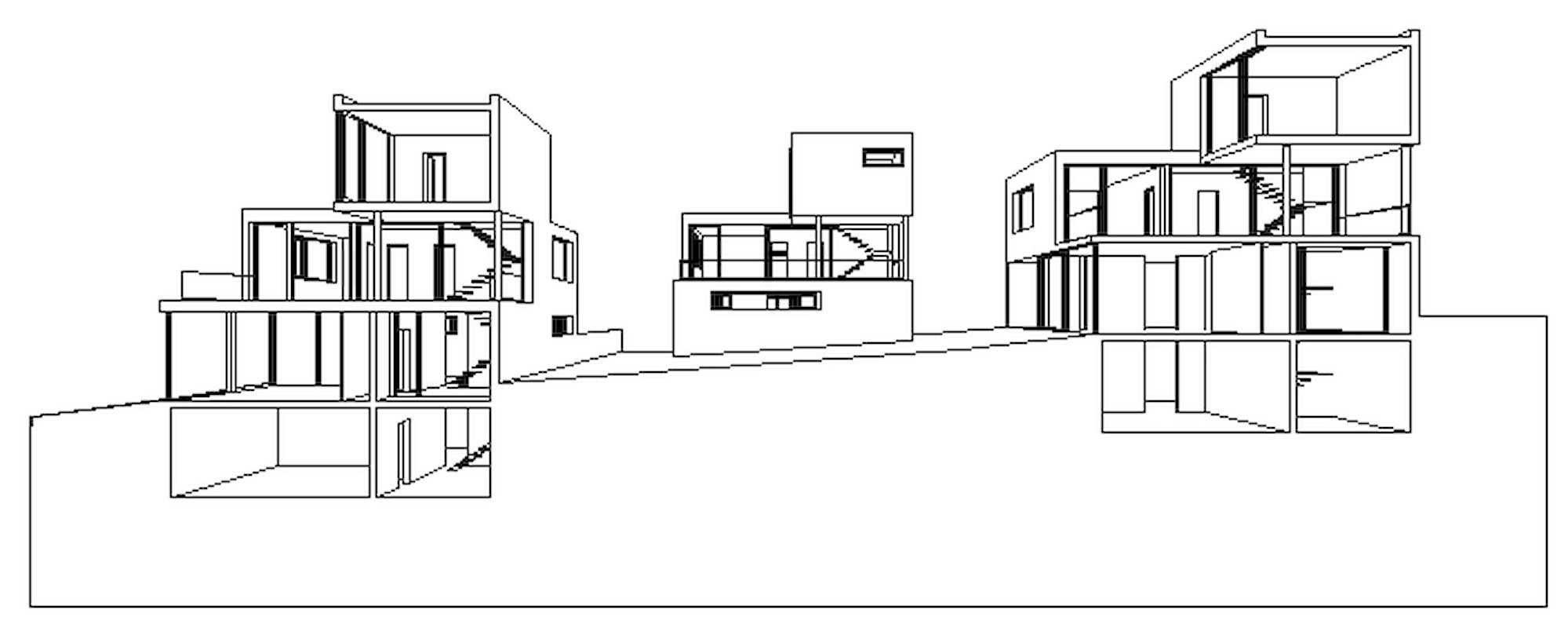 Baukörperreihungen verlaufen grundsätzlich mit der Hangneigung und zwischen den Häusergruppen liegen Abstände in Gebäudetiefe, so daß eine ausreichende Durchlüftung unterstützt wird. Die Versiegelung wird im gesamten Planungsgebiet auf ein Minimum eingegrenzt und versiegelte Flächen speisen zur Entlastung des örtlichen Kanalnetzes zwei teichartige Regenwasserrückhaltebecken. Es entstehen Verdunstungsmöglichkeiten, einer Überwärmung des Gebietes im Hochsommer wird auf natürliche Weise entgegengewirkt und darüber hinaus können die Regenwasserrückhaltebecken zur Landschaftsbewässerung herangezogen werden.