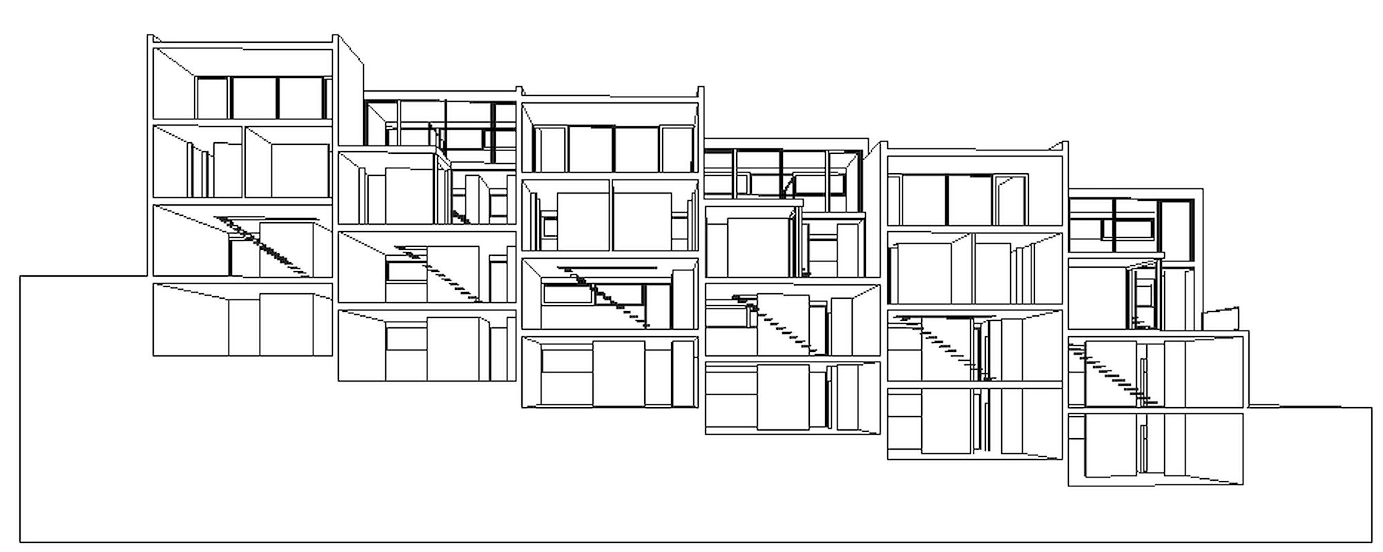 Auf drei Bebauungsstreifen konzentriert sich das Bauprogramm. Im Norden, hangaufwärts, liegen die beiden Bebauungsstreifen auf welchen die Wohnstruktur angeordnet sind. Zwischen den beiden Wohnstreifen und dem Ortsrand von Lahr wird ein Band für übergreifende Infrastruktur und Freizeiteinrichtungen, als Bindeglied zwischen neuem Wohngebiet und bestehender Siedlungsstruktur, errichtet. Die Wohnstreifen sind in Bebauungsfelder unterteilt, auf welchen sich jeweils kleine Hausgruppen von Reihenhäusern, Doppelhäusern, Einfamilienhäusern und Mehrfamilienhäusern abwechseln. Bauabschnitte sind nahezu beliebig wählbar, da die Bebauungsfelder nur jeweils eine geringe Anzahl von Häusern aufnehmen sollen. Pro Feld können 6 Reihenhäuser, 6 Doppelhäuser, vier Einfamilienhäuser oder ein Mehrfamilienhaus angesiedelt werden. Leitgedanke für die vorgeschlagenen Baukörperausbildungen war bei allen Gebäudetypen, trotz der Baukörperbündelung einen starken Außenraumbezug (Zimmer mit Aussicht in den obersten Geschossen) zu schaffen. Jedem Bebauungsfeld wird eine Fläche für Schaltgarten angegliedert, d.h. hier kann jeweils unterschiedlichen und wechselnden Bedürfnissen nach privaten Gartenflächen entsprochen werden.