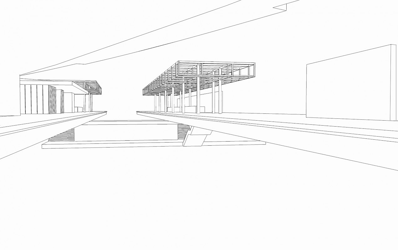 It as clear from the beginning of the design, that only a large clearly defined form would be able to produce the desired presence in a complex and confusing urban mix. This response is similar to that of the American artist Donald Judd, who placed large cubic figures in a variety of environments. Unlike Judd this cubic form sits in slender columns and functions as both a roof and a “signal”. The roof intentionally pays reference to the city works as providers of energy and a modern transport system while also acting as a beacon for the many thousand of passengers who pass through the station every day.
