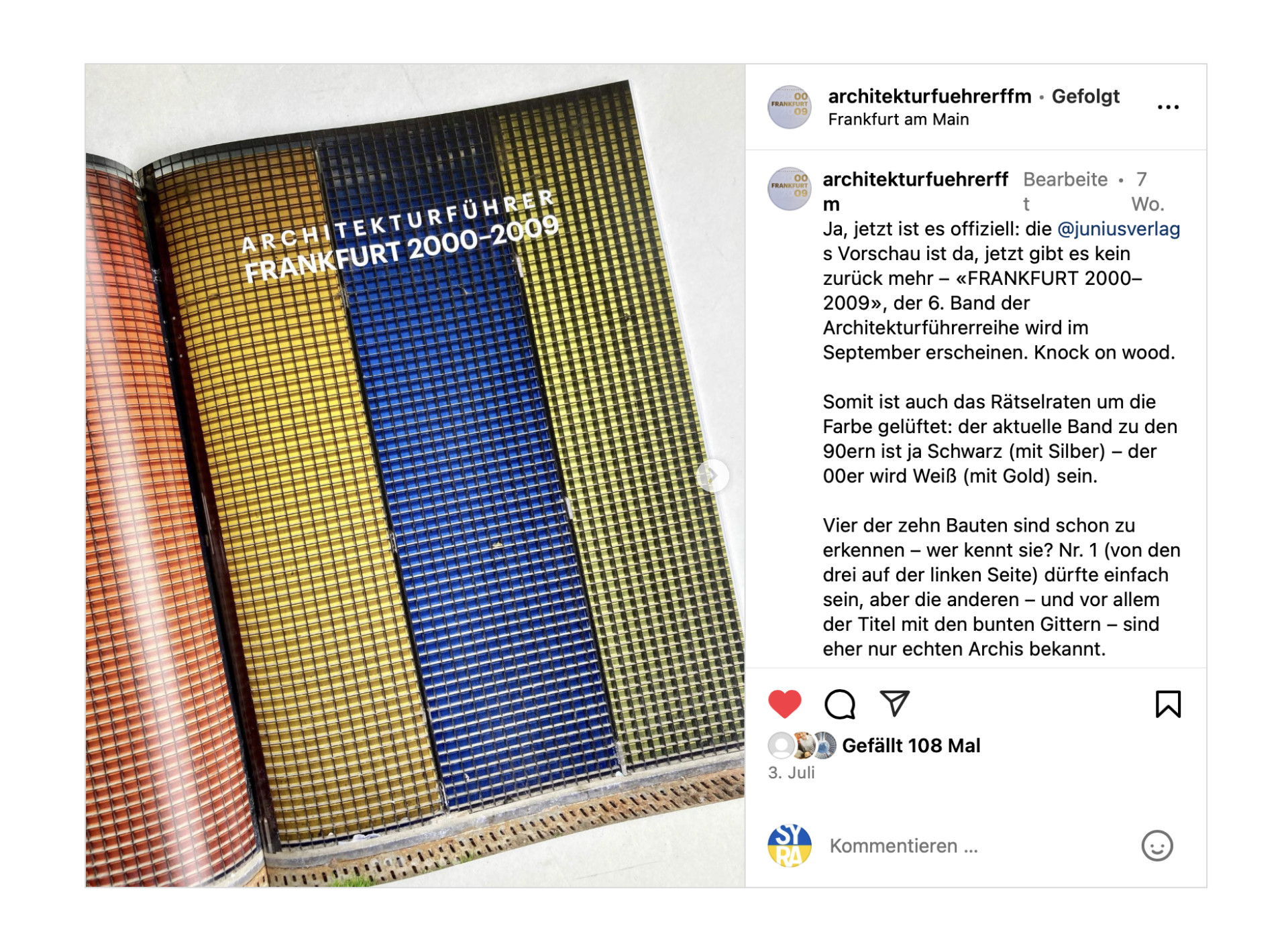 | 2024 | SYRA im Architekturführer Frankfurt 2000 - 2009 dabei | Cover | JUNIUS-VERLAG |
