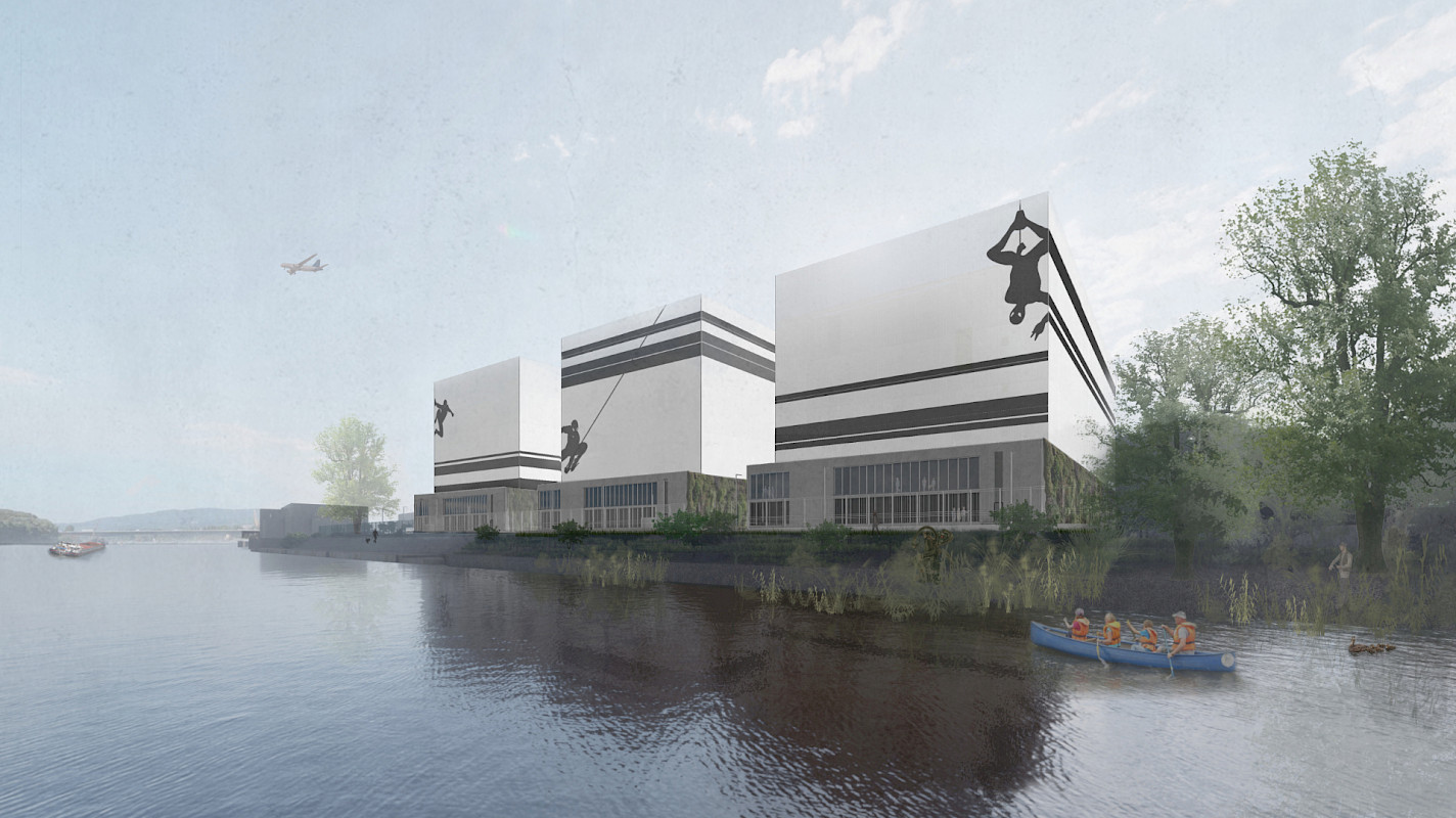 Die Fassadengestaltung antwortet mit Kunst, so wie es z.B. Anish Kapoor innerhalb der Tate Modern/London gemacht hat. Die Verfasser schlagen als Verkleidung sehr großmaßstäbliche gedruckte Grafiken auf Textilbahnen vor und verweisen auf bewährte Verfahren, mit welchen bereits ähnlich große Volumen wie z.B. das Bayer-Hochhaus in Leverkusen und andere Großprojekte erfolgreich verkleidet wurden. Die Einfachheit der Konstruktion bietet zudem über die Jahre Möglichkeiten zu wechselnden Erscheinungsbildern. Eine gut kuratierte Wechselausstellung könnte auf Dauer im sehr großen Maßstab großformatige Bilder zeigen und somit immer wieder neue attraktive Szenarien bieten.