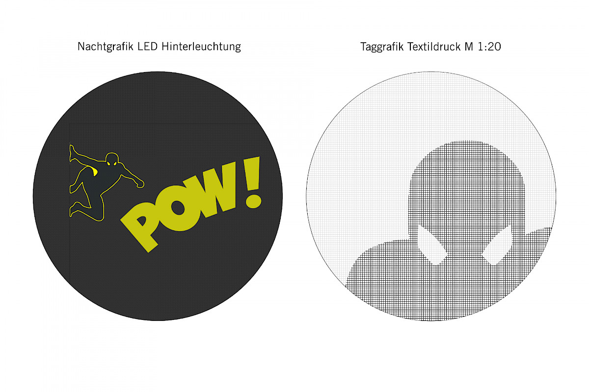 Die Textilfassade besitzt 35% offene Fläche und kann somit auch vor Fassadenöffnungen verlaufen. Es ergibt sich ein homogenes Gesamtbild, das von Veränderungen der Öffnungen im späteren Planungsverlauf unbeeinflusst bleibt.